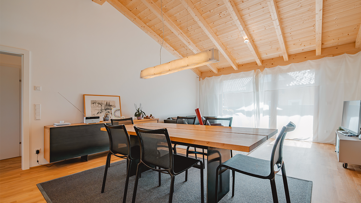 Der natürliche Baustoff Holz sorgt nicht nur für ein angenehmes Raumklima, sondern auch für eine besonders hohe Wohnqualität und gesunde Lebensräume.