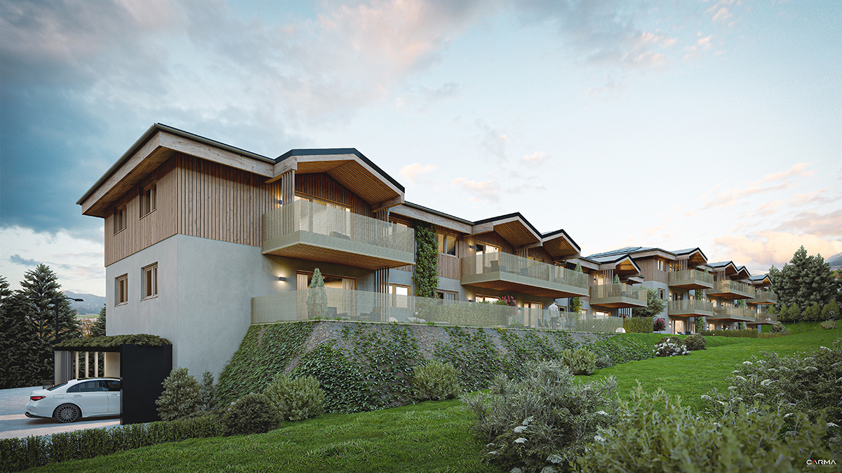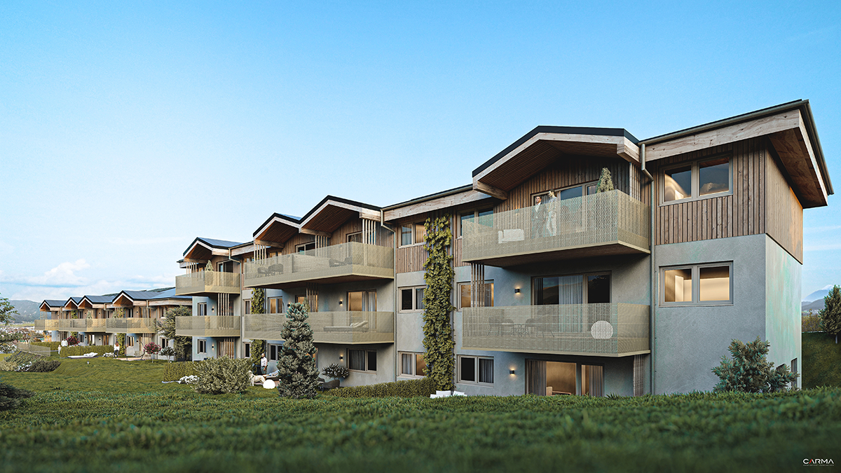 Diese modernen und umweltfreundlichen Wohnungen aus Massivholz bietet einen durchdachten Grundriss, der sich den Bedürfnissen der Bewohner anpasst und sorgt mit seiner hochwertigen Ausstattung für Komfort, Energieeffizienz und schafft dank Holz eine besonders warme Atmosphäre.